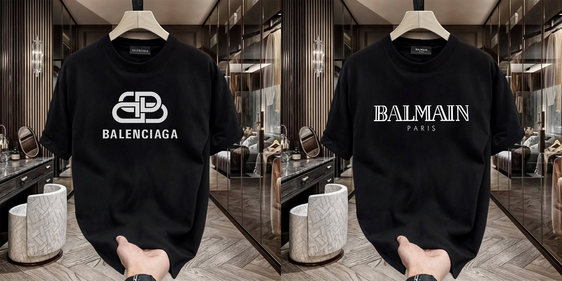 Men's Premium Selling T-Shirt (BD-Balenciaga New +Balmain White)