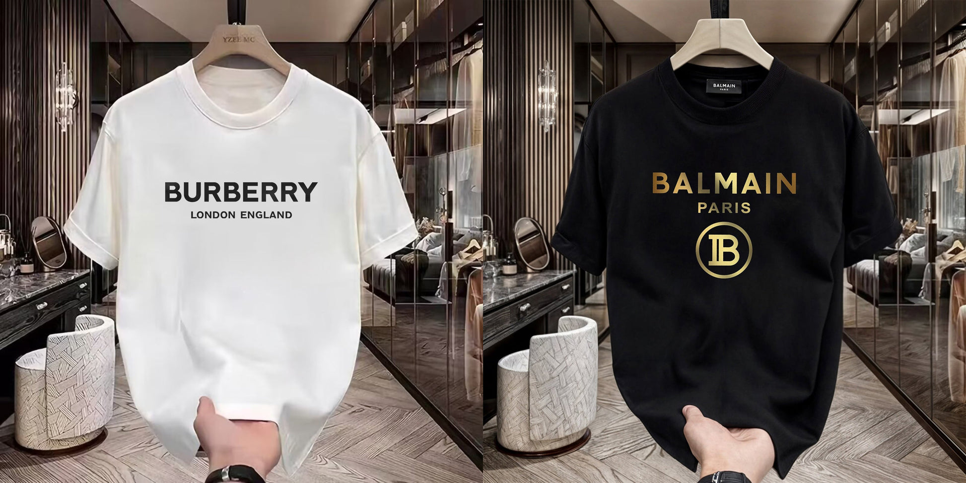 Men's Premium Selling T-Shirt (BD-BURBERRY LE +Balmain Gold)