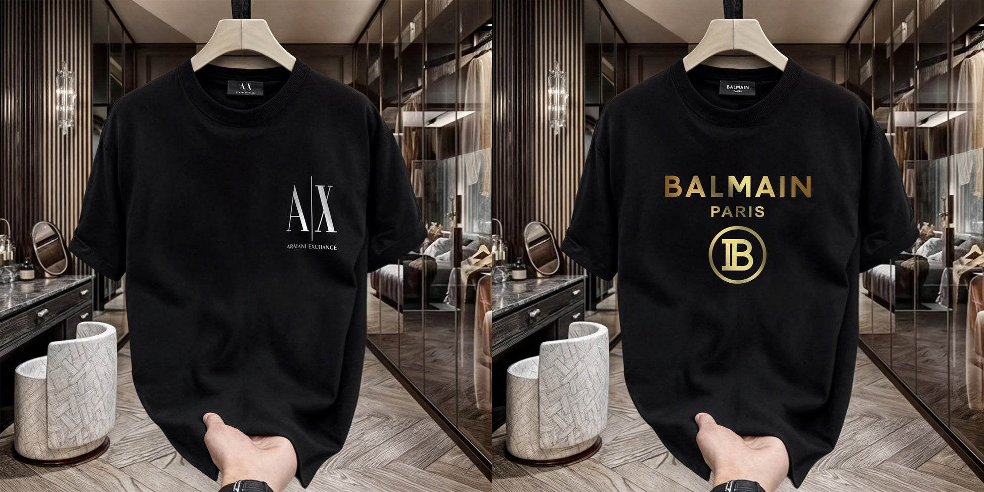 Men's Premium Selling T-Shirts (BD-SMALL AX WHITE+BALMAIN GOLD)