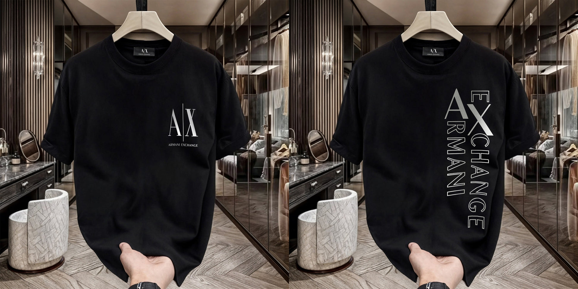 Men's Premium Selling T-Shirts (BD-SMALL AX WHITE+ARMANI EXCHANGE SILVER)