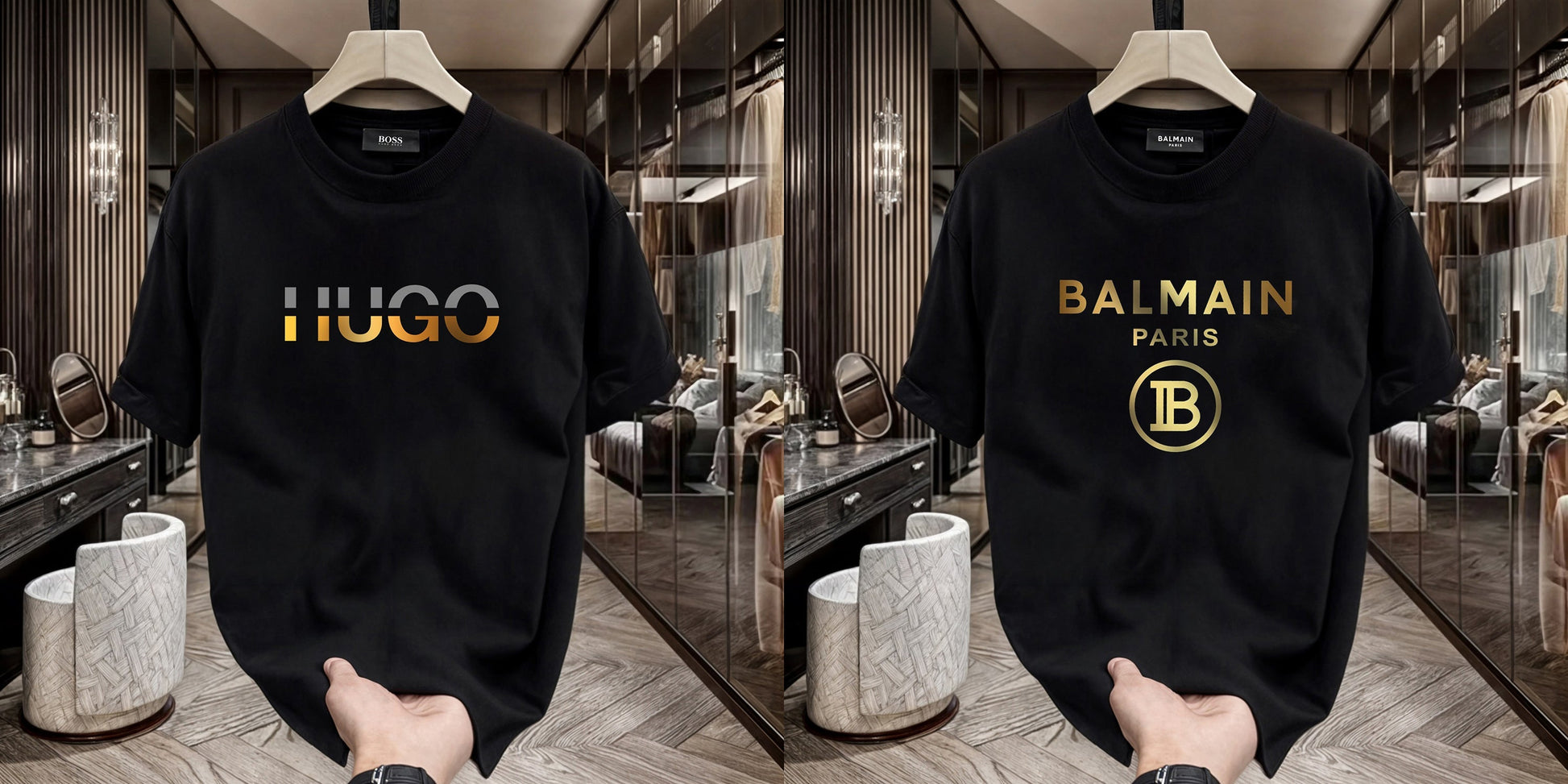Men's Premium Selling T-Shirts (BD-HUGO GOLD+Balmain Gold)