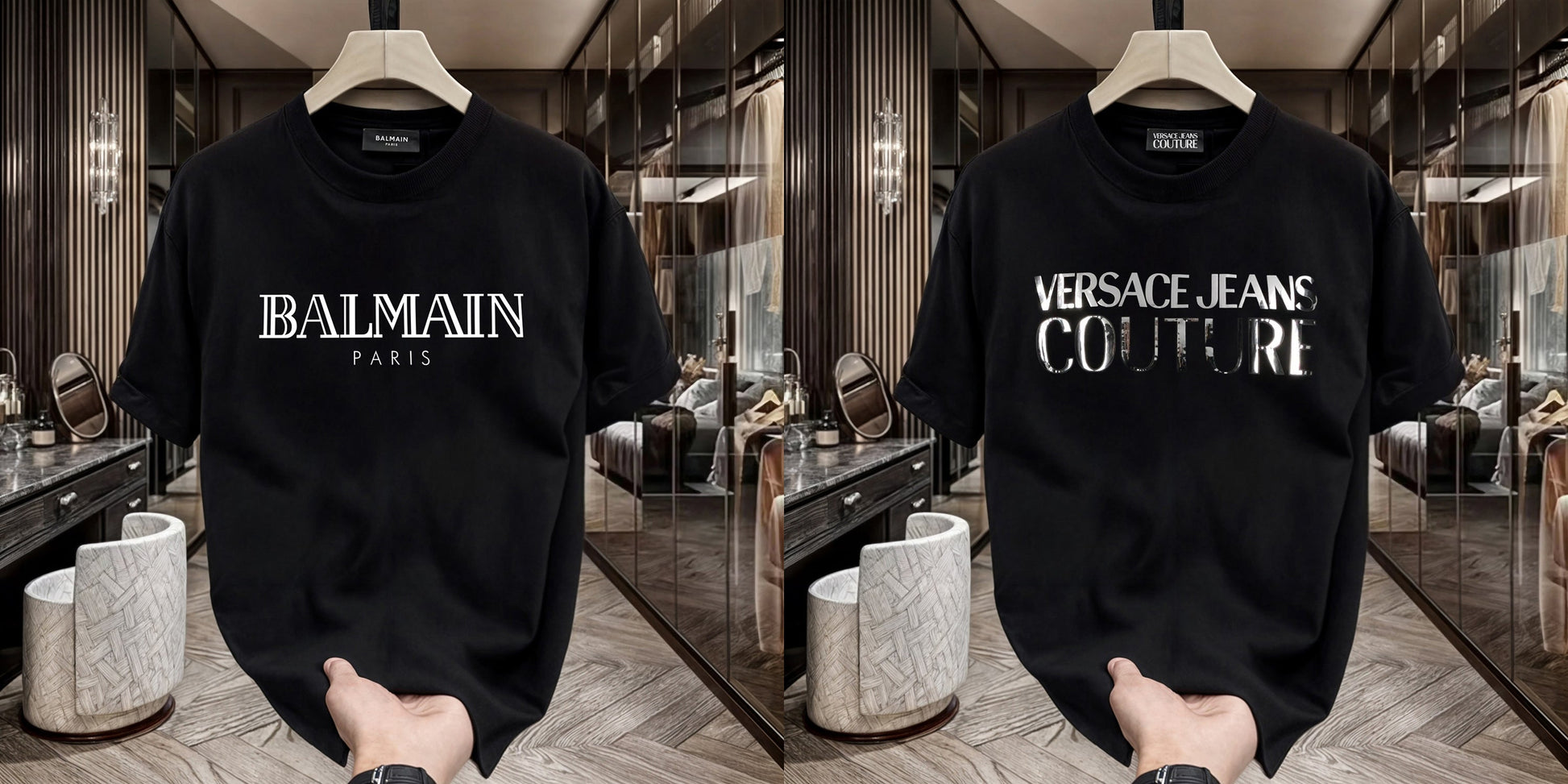Men's Premium Selling T-Shirts (BD-BALMAIN WHITE+VERSACE SILVER)
