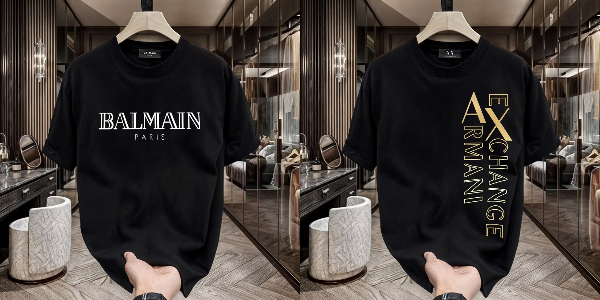 Men's Premium Selling T-Shirts (BD-BALMAIN WHITE+ARMANI EXCHANGE)